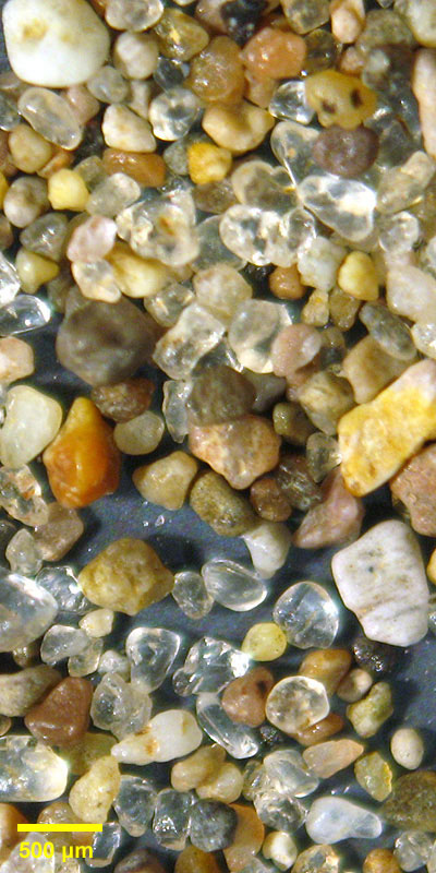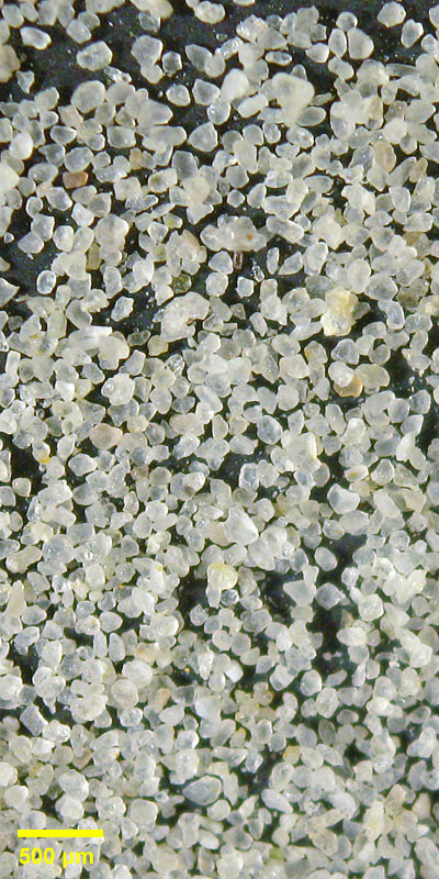 This is outwash from Turner glacier, a mix of silt and sand. Auyuittuq Park, Baffin Island. This subsample is biased toward larger grains; there was more floury silt in the sample. |