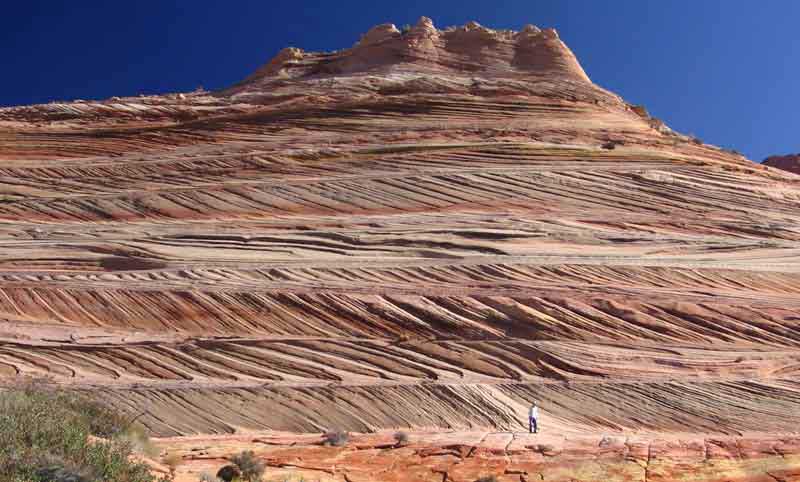 Fig 3. Outcrop with about a dozen sets of crossbedding (Coyote Buttes, Utah) (flipped left-to-right to match fig 1 and 2)