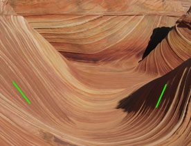 The trend+plunge pair come from two lineations. Works, of course, only if the cross-strata are planar. If the cross-strata are parallel, the lineations can come from adjacent strata. Spreadsheet version (eg., for phone) | |