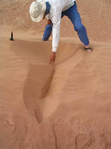 Photo 7, 8. Even 'low impact' walking up the dune face caused the moist surface layer